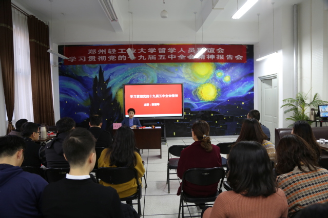 12月23日下午,学校留学人员联谊会在双创中心223室举办学习贯彻党的十九届五中全会精神报告会暨交流座谈会,党委统战部负责人、留联会会员及部分留学归国人员代表30余人参加了会议。