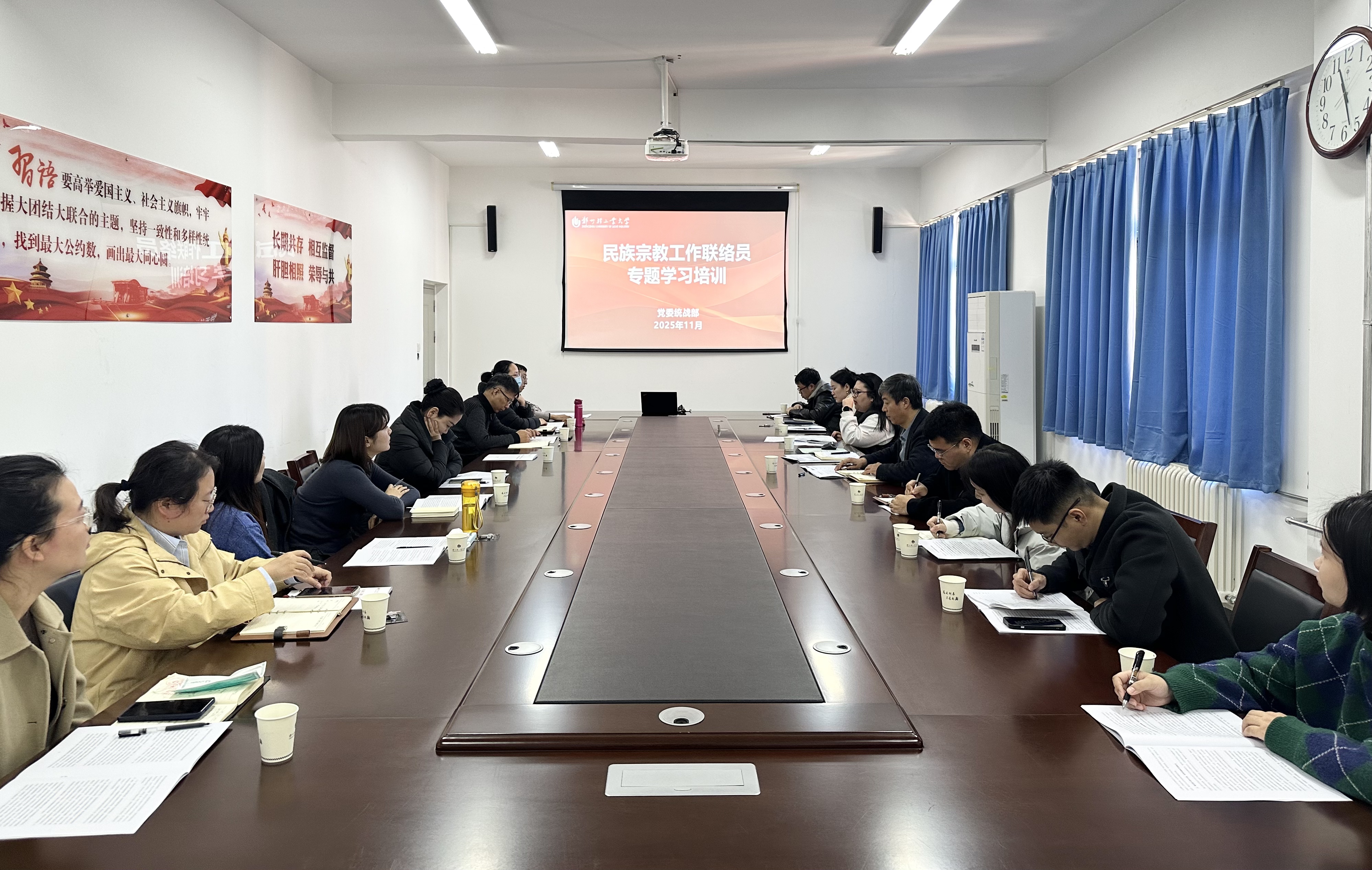 为学习贯彻党的二十届四中全会精神,做好学校民族宗教工作,进一步提升民族宗教工作联络员队伍素质能力,11月21日,学校组织开展了民族宗教工作专题学习培训。全体民族宗教工作联络员参加学习培训。